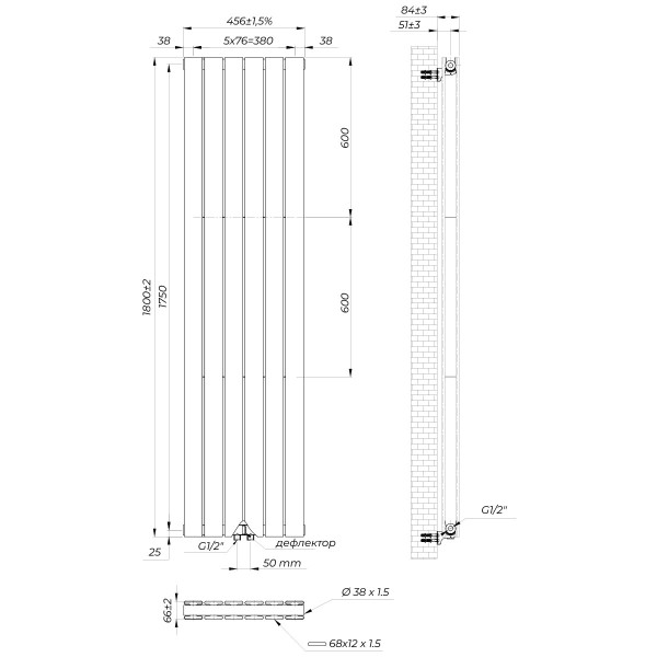 ✅ Ідеальна геометрія — забезпечує симетричне розміщення радіатора відносно трубопроводу та стіни
