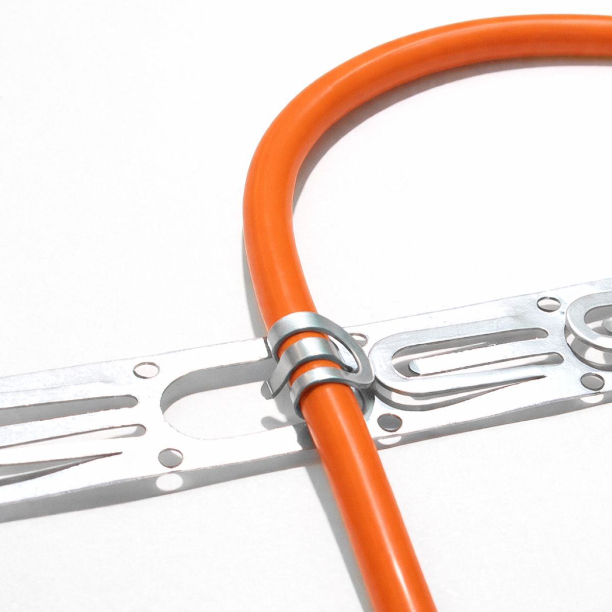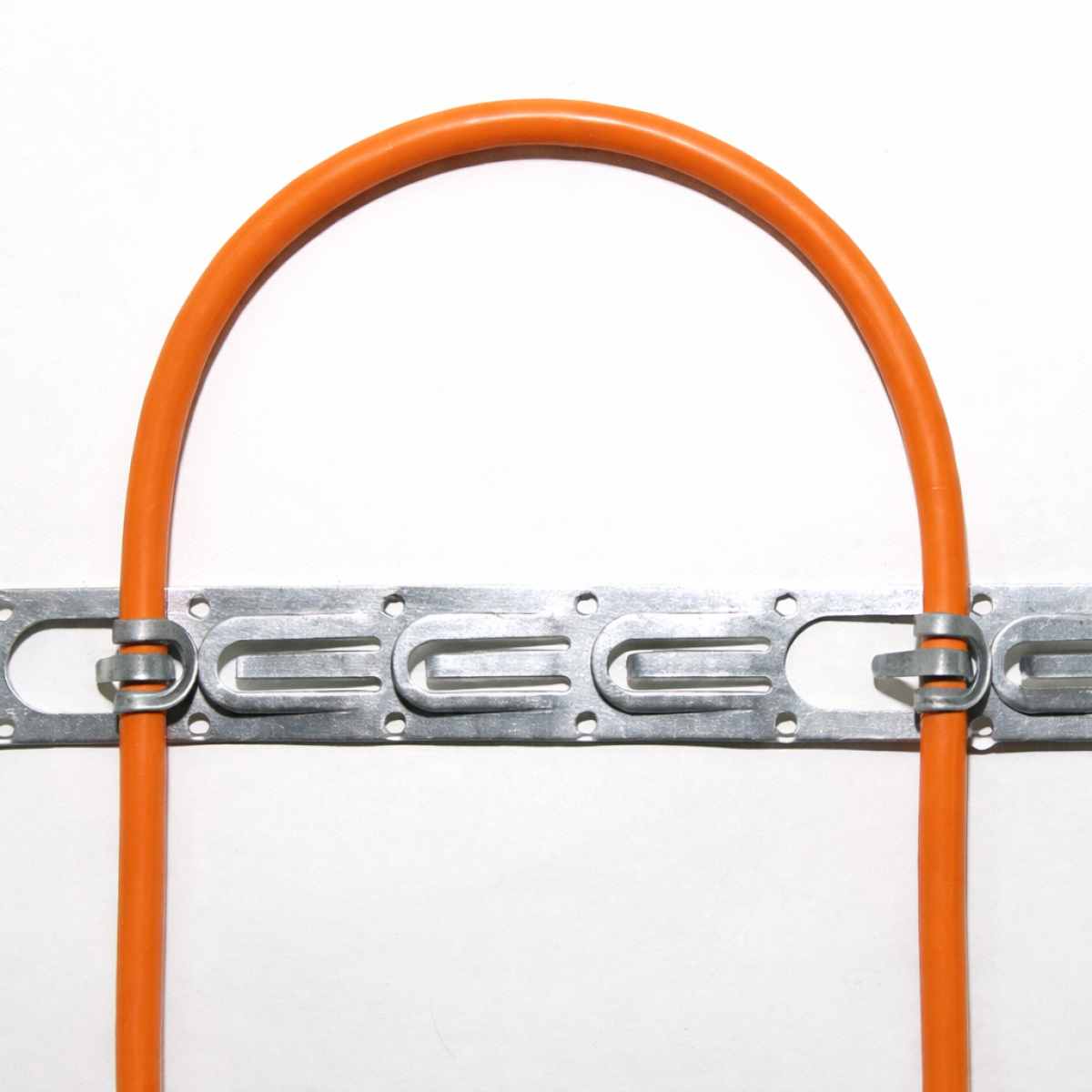 - Надійність: Жорстка сталь утримує кабель при заливці стяжки та зберігає заданий крок укладання.