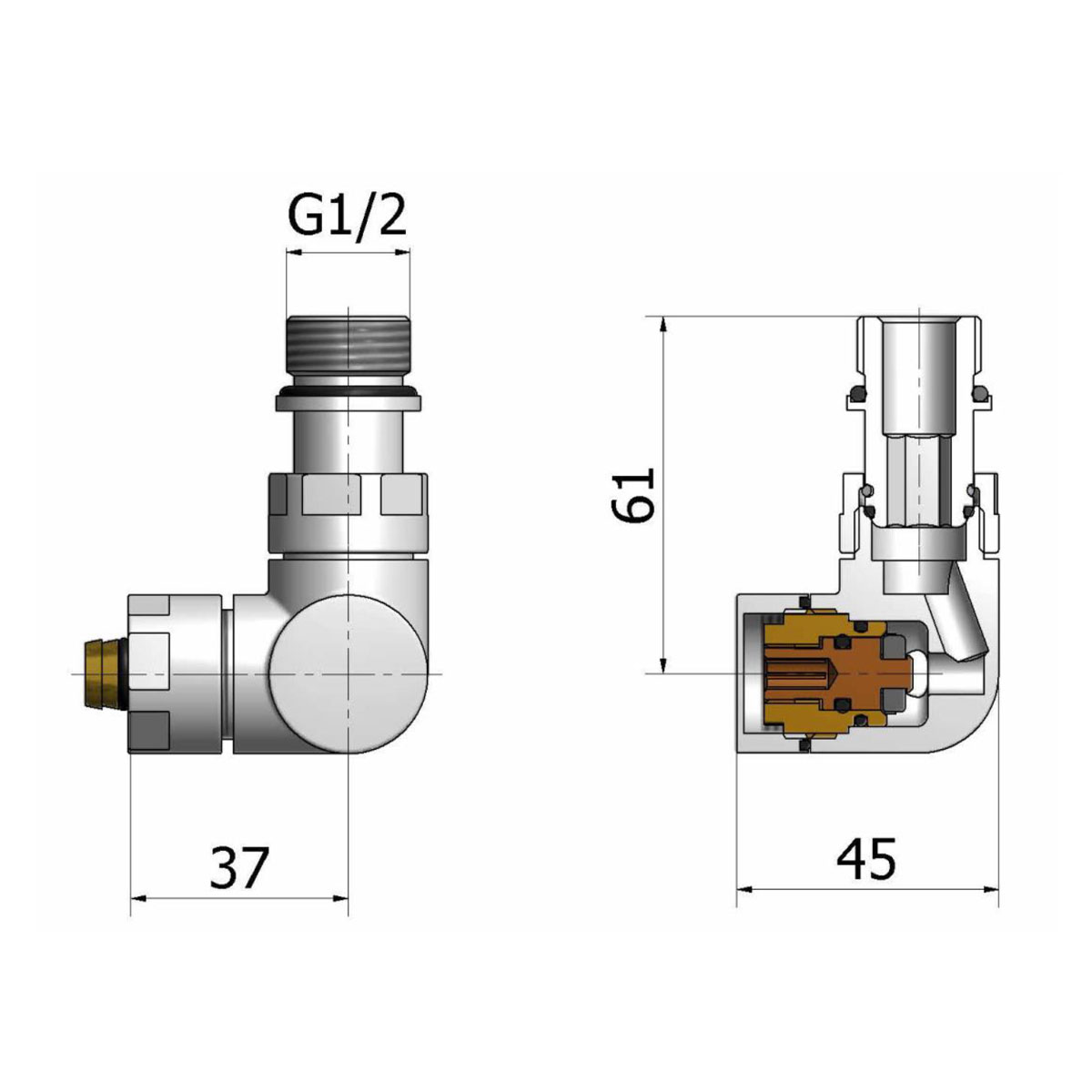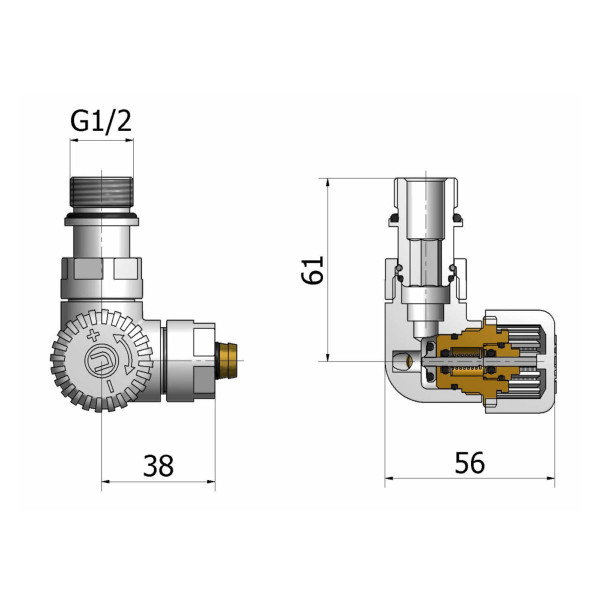 Вироблений із високоякісної латуні, цей комплект гарантує тривалу експлуатацію і стійкість до корозії. Стандартні різьблення 1/2" забезпечують надійне з'єднання, а термостатична головка дозволяє точно налаштовувати температуру, що сприяє економії енергії та створенню комфортного мікроклімату в вашій оселі.