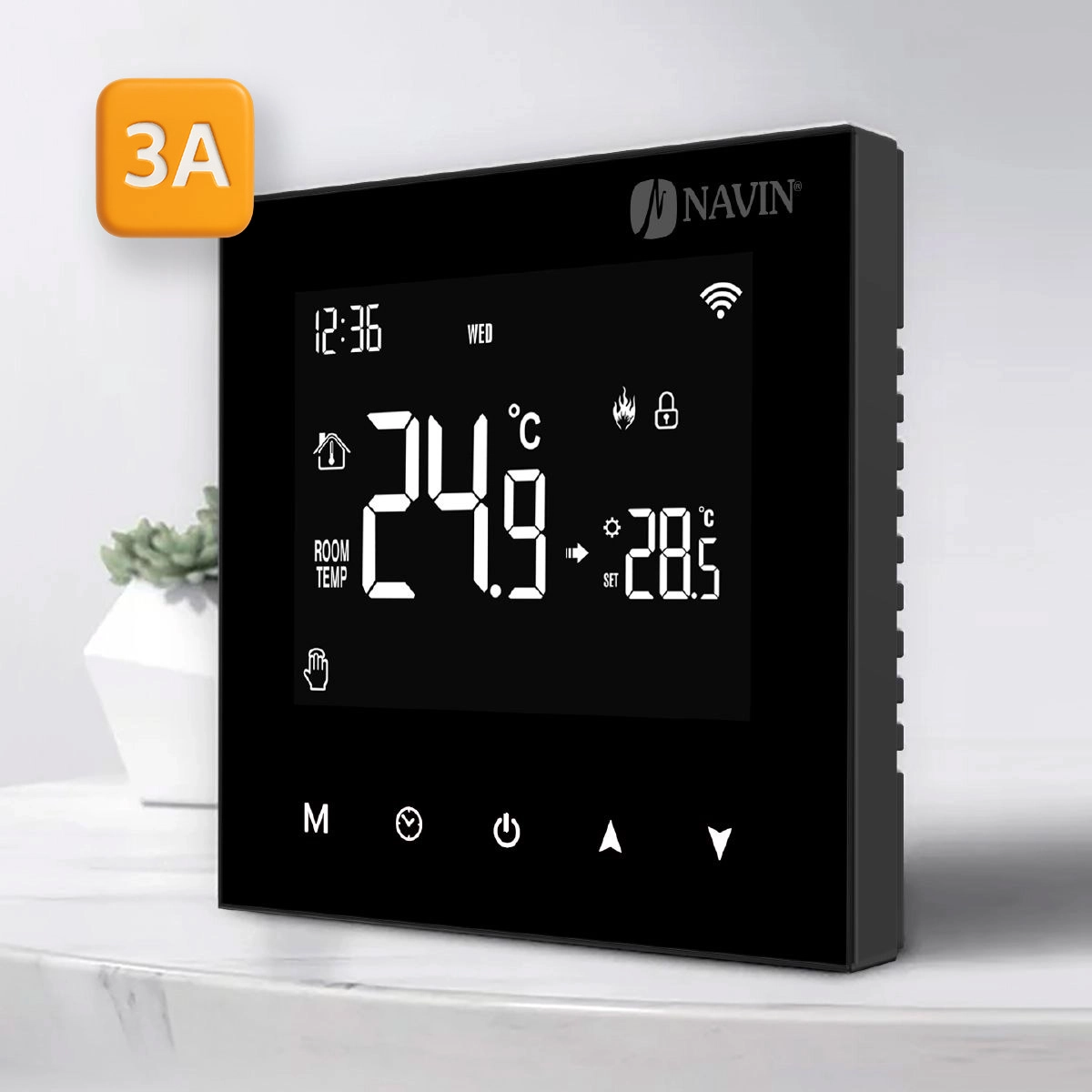 Терморегулятор для газового котла NAVIN WT100 B-3А — це сучасний програмований терморегулятор чорного кольору з функцією Wi-Fi, призначений для керування газовими котлами. Термостат оснащений великим глянцевим сенсорним LCD-дисплеєм для зручності використання.