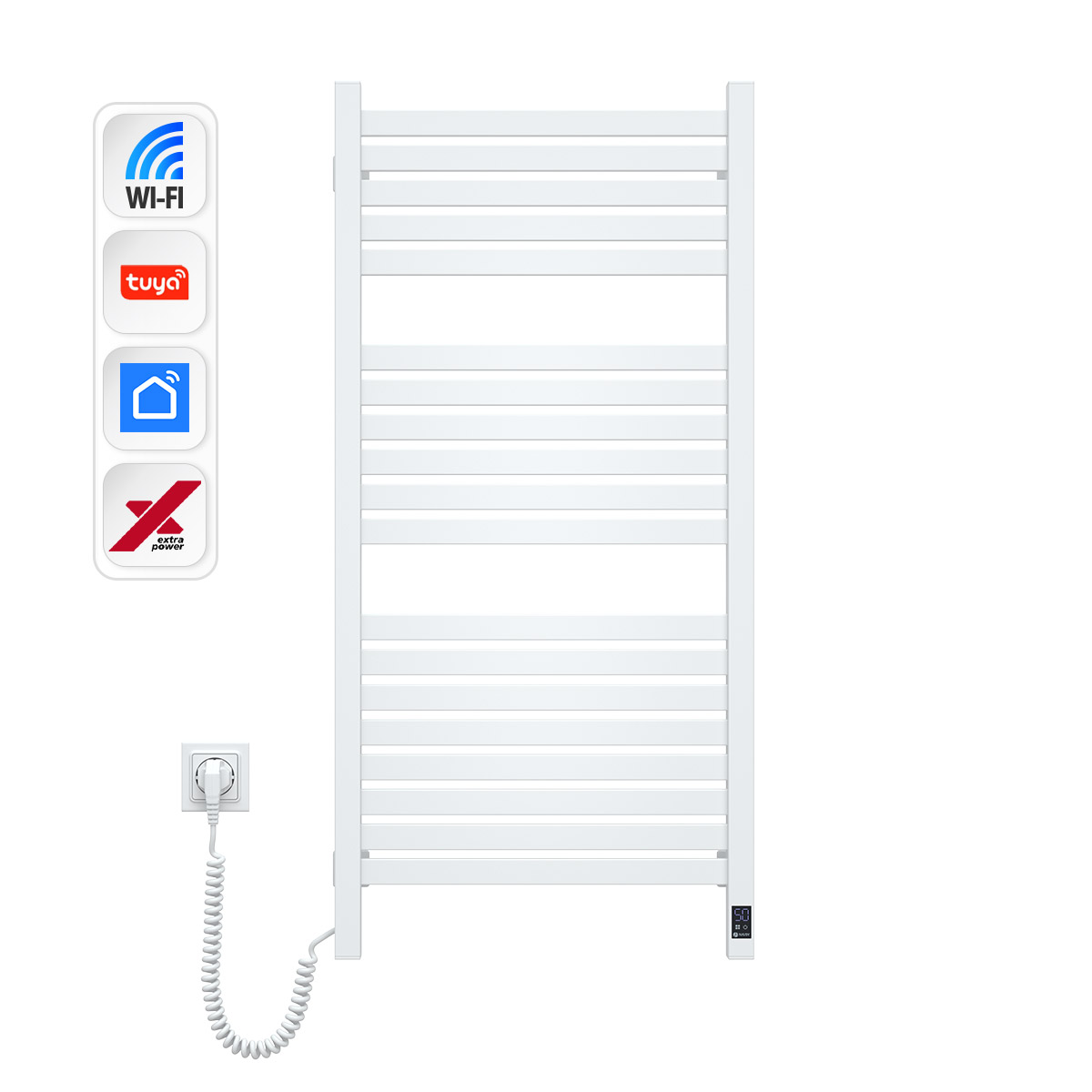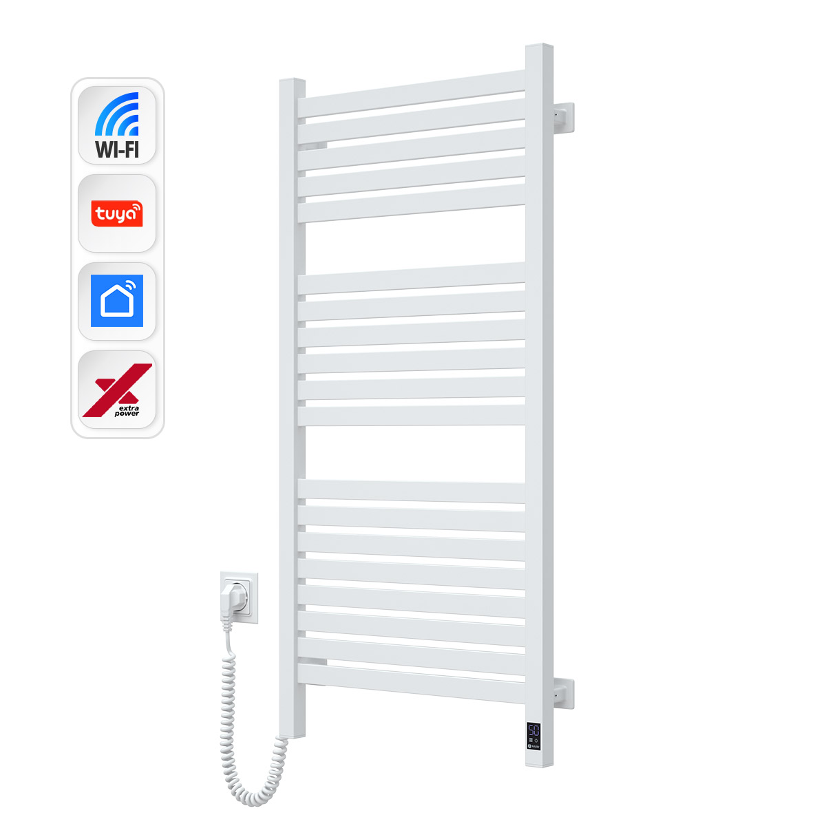 Модель оснащена сенсорним керуванням з модулем Wi-Fi для віддаленого керування через застосунок Smart Life (брендований україномовний додаток). Завдяки цьому Ви можете регулювати температуру, програмувати таймер, створювати тижневі сценарії економії та інтегрувати пристрій у smart home-екосистему.