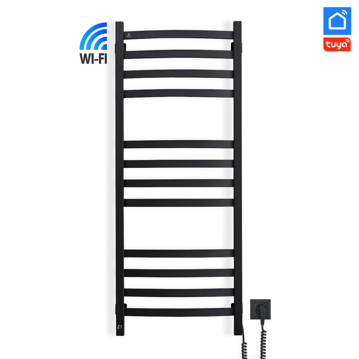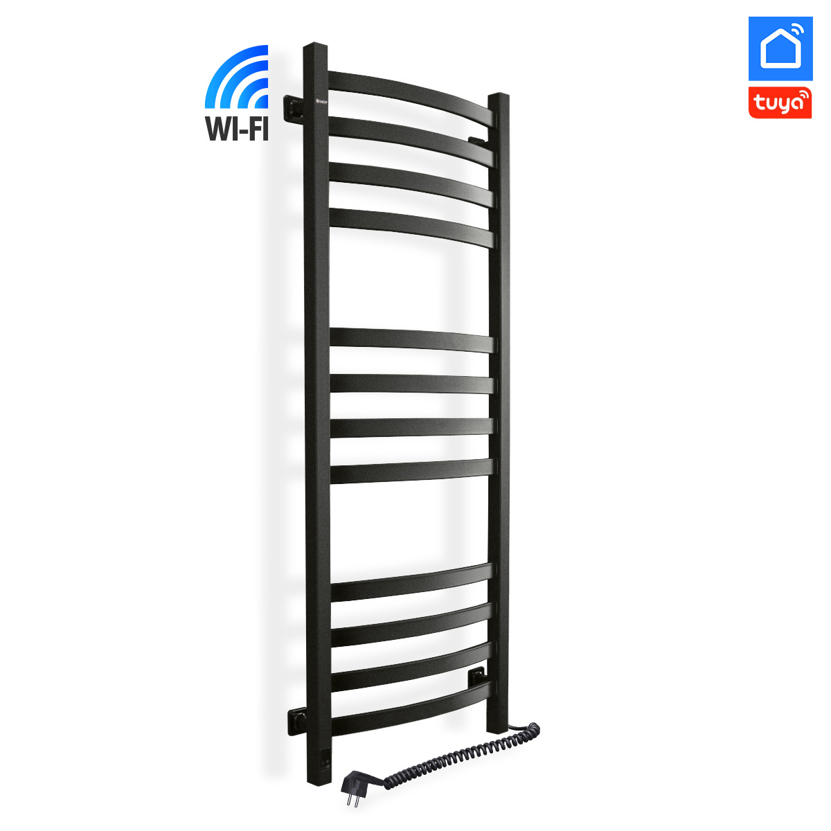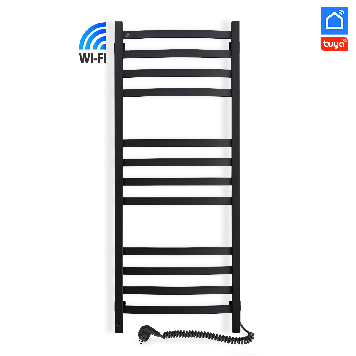 Технічні характеристики електричної рушникосушарки Navin Avalon 480х1200 Sensor з Wi-Fi (розташування шнура з вилкою — праворуч, колір – чорний муар) виготовлена з вуглецевої сталі, яка відрізняється високою якістю і міцністю.
