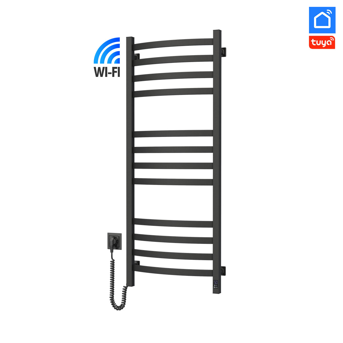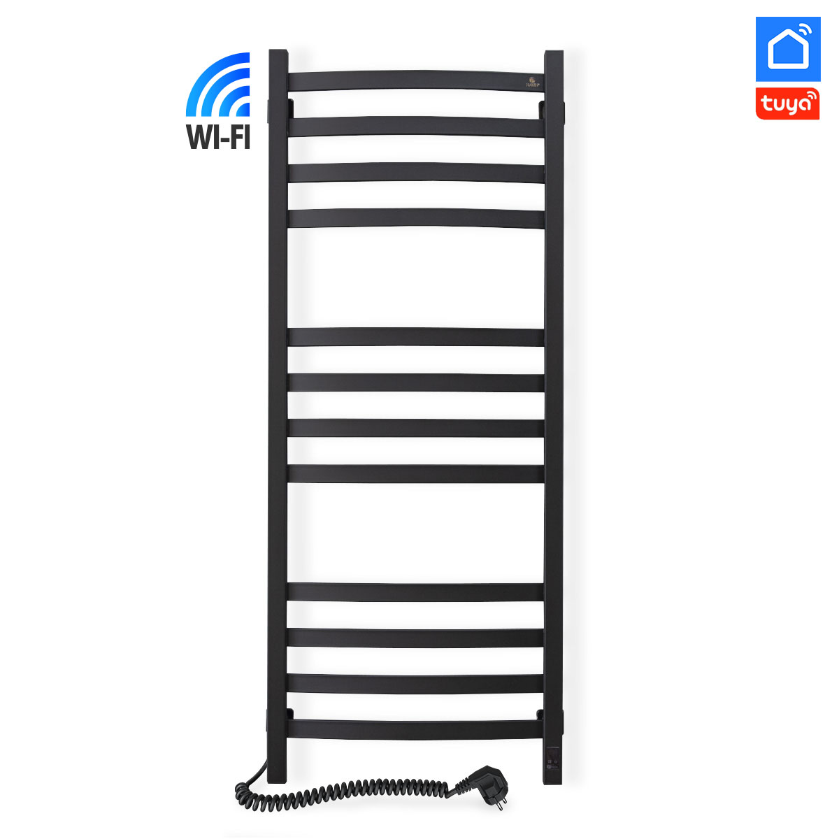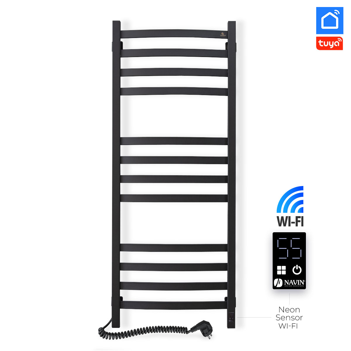 Технічні характеристики електричної рушникосушарки Navin Avalon 480х1200 Sensor з Wi-Fi (розташування шнура з вилкою — праворуч, колір – чорний муар) виготовлена з вуглецевої сталі, яка відрізняється високою якістю і міцністю.