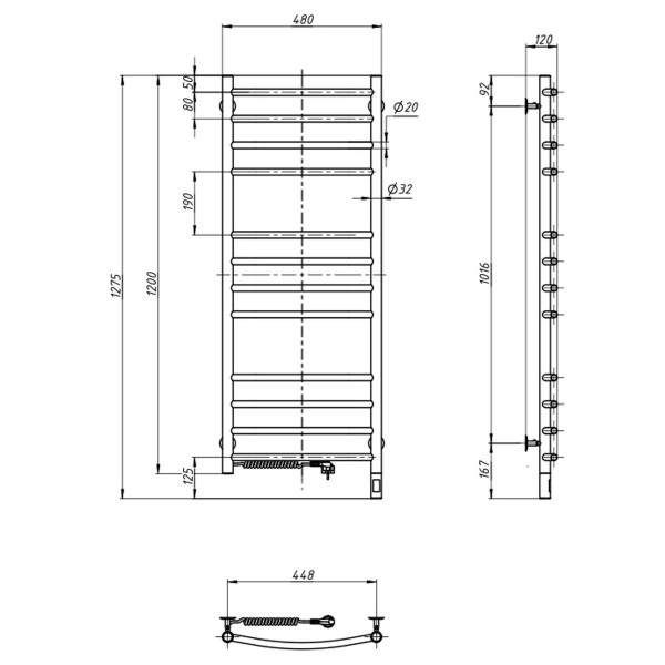 Опис - Рушникосушка Камелія 480х1200 Sensor ліва з таймером