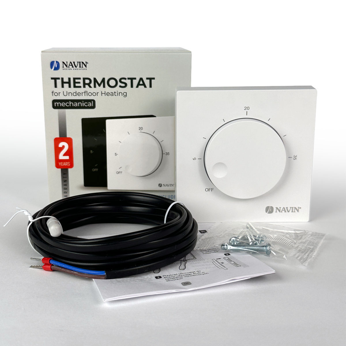 Описание - Терморегулятор механический для теплого пола NAVIN EH84WM-16A, белый матовый