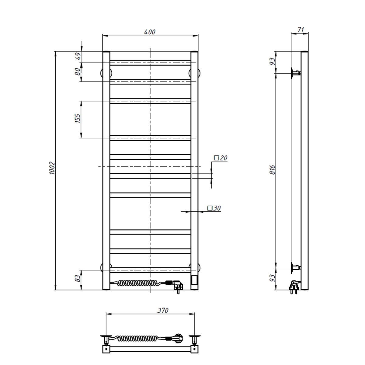 Полотенцесушитель Loft 400х1000 Sensor (расположение шнура с вилкой — слева) от украинского производителя NAVIN изготовлен из нержавеющей стали, которая устойчива к царапинам и механическим повреждениям, а также обладает высокой антикоррозийной устойчивостью. Толщина стенки перемычек сушилки составляет 1,5 мм, а боковых стоек (коллекторов) — 2 мм. Полотенцесушитель имеет зеркальную полированную поверхность, полученную путем высокоточной электроплазменной полировки.